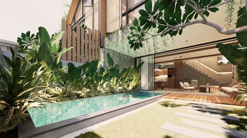 These villas feature a seamless blend of Balinese modern tropical design and contemporary